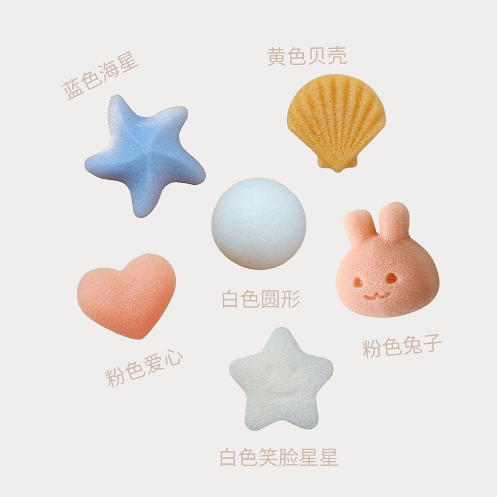 Konjac Sponge (6 shapes - Bunny,Heart,Circle,Shell,Star Fish, Smiley face)