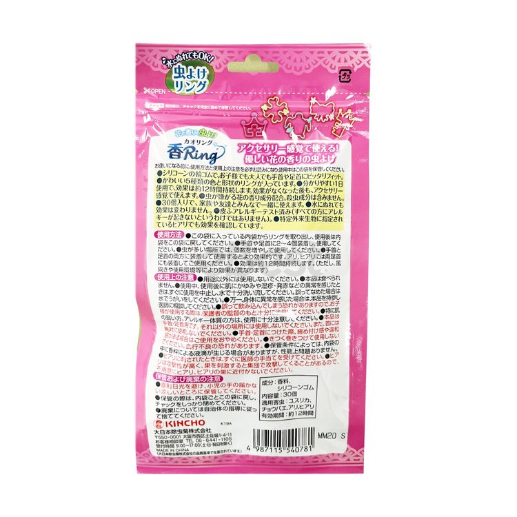 Kincho Mosquito Repellent Bracelet Natural Essential Oil Pink 30pc