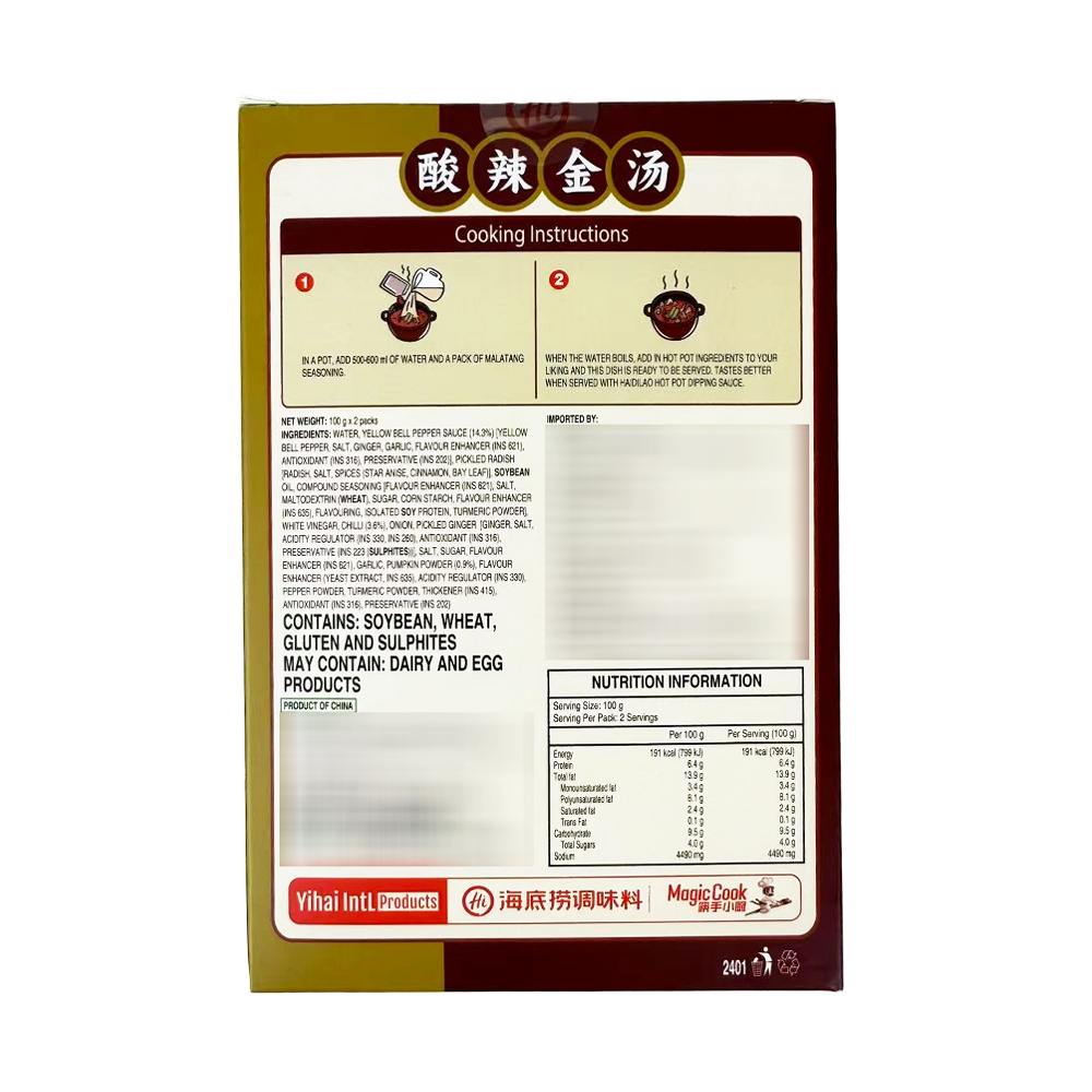 Haidilao Spicy & Sour Golden Broth Hotpot Base 200g
