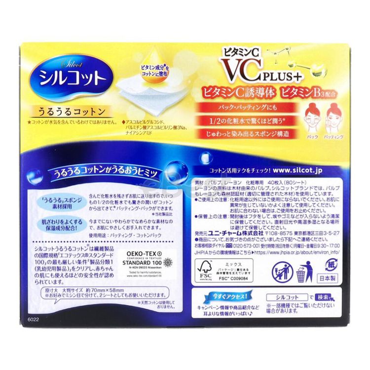 Japan Unicharm VC Plus 1/2 Sponge Facial Cotton 40pcs