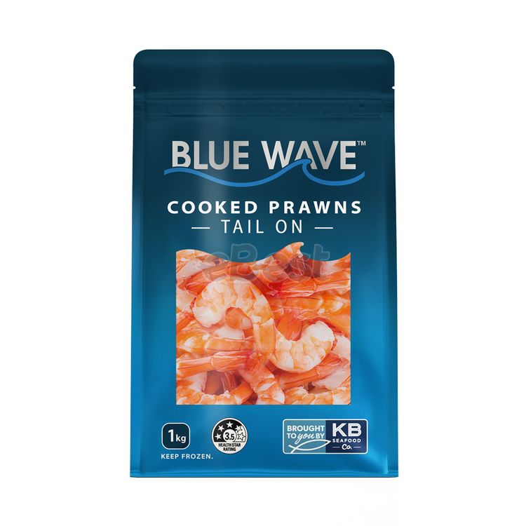 Blue Wave Cooked Then Peeled Tail On Prawns 31/40 1kg