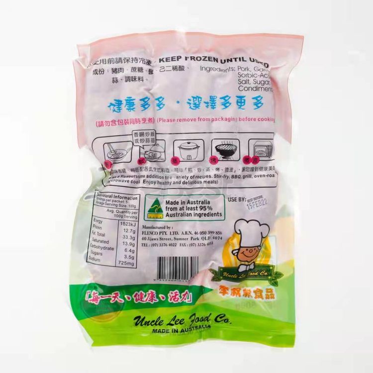 Li Shu Shu Taiwanese Garlic Sausage 500g Frozen