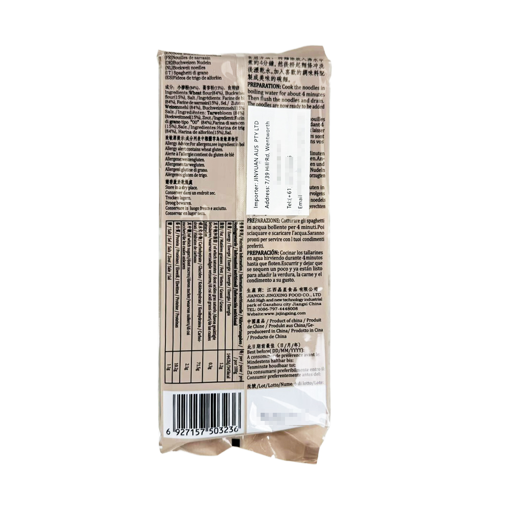 Jingjing Japanese Buckwheat Noodles are carefully selected and refined from high-quality buckwheat flour, with a net weight of 300g per pack. They have a smooth and elastic taste, and can be easily cooked with Japanese sauce to create authentic Japanese cuisine. They are low-fat, healthy, and rich in dietary fiber, which helps digestion. They are an ideal choice for weight loss and vegetarians. Simply boil the buckwheat noodles in boiling water, remove and drain, and mix with sauce and side dishes according to personal taste to enjoy.