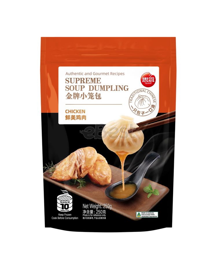 Miss Gold Xiaolongbao, 250g delicious chicken meat stuffing, thin skin, filled with rich soup, delicious taste, rich nutrition, convenient and fast heating, no added color preservatives, safe and healthy, suitable for all meals.