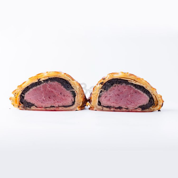 A classic gourmet dish that symbolizes elegance and luxury, our Wagyu Wellington instantly becomes the perfect centerpiece for any special occasion or romantic dinner. Carefully prepared, this dish has a core of tender beef filet, wrapped in pancakes, and then sealed with golden and crispy puff pastry. Every bite brings rich texture and taste enjoyment. Weight is 400g.