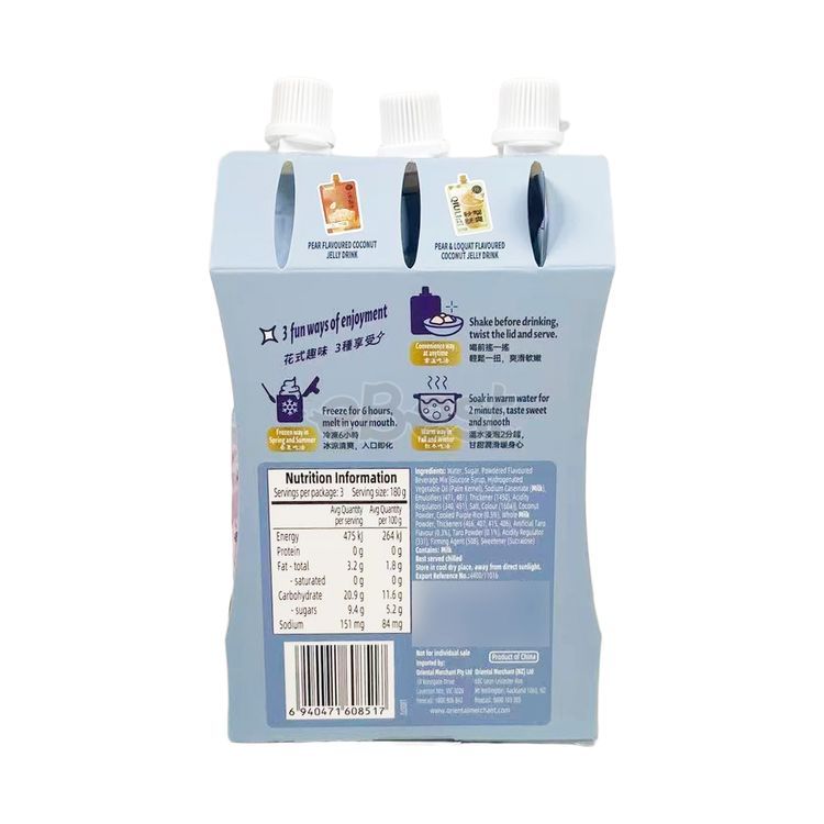 Taro flavored purple rice with unique nutrition. Taro and purple rice dessert, which combines the sweetness of taro with the nutrition of purple rice, brings a unique taste and rich layers. The design of sucking is convenient and interesting. It is a new choice for enjoying delicious and healthy convenient desserts.