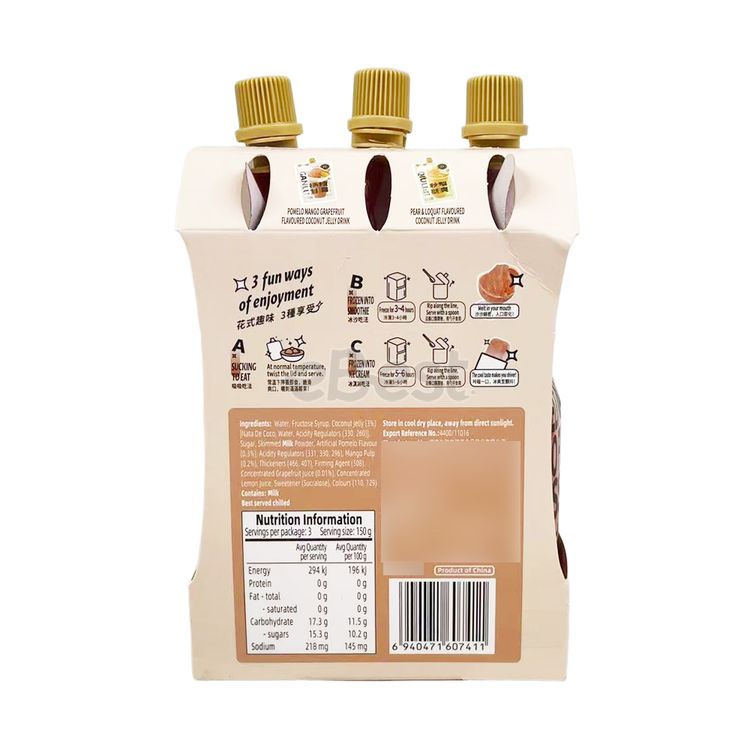 Sweet and refreshing grapefruit with a refreshing and rich taste. The mango sago grapefruit dessert ingeniously combines the sweetness of mango sago with the freshness of grapefruit, bringing a layered and rich taste dessert enjoyment. The sucking design allows delicious food anytime and anywhere, making it a new favorite for quenching thirst in summer.