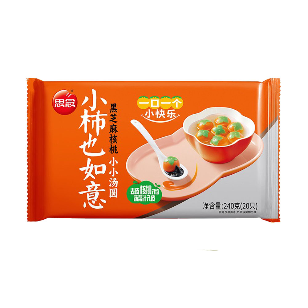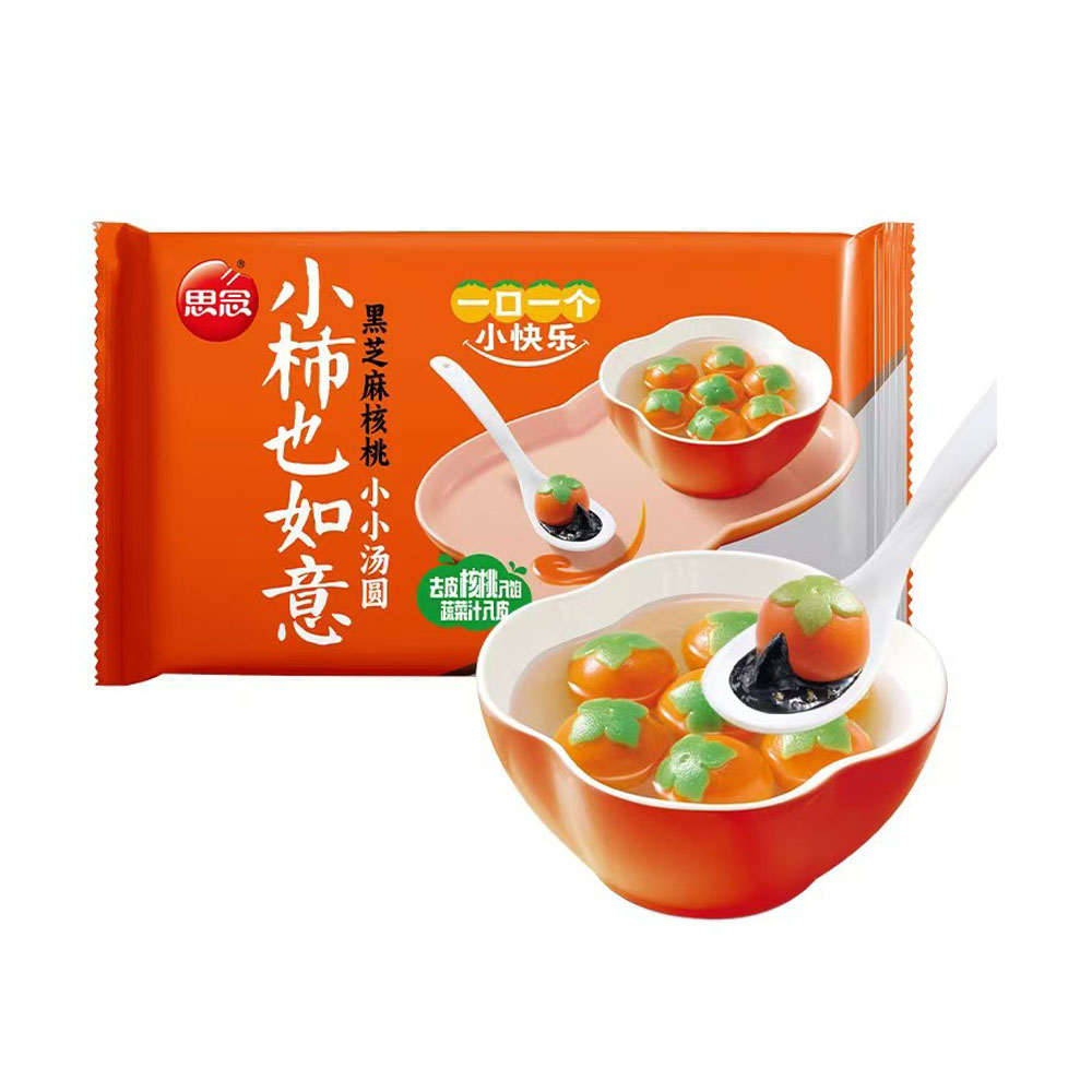 Small persimmon also ruyi black sesame walnut small dumplings, the use of lovely small persimmon shape, symbolizing all the best, satisfactory, rich in black sesame and walnut filling, taste delicate and mellow, each bite is full of happiness and satisfaction, is a holiday or family dinner in the sweet dessert choice.