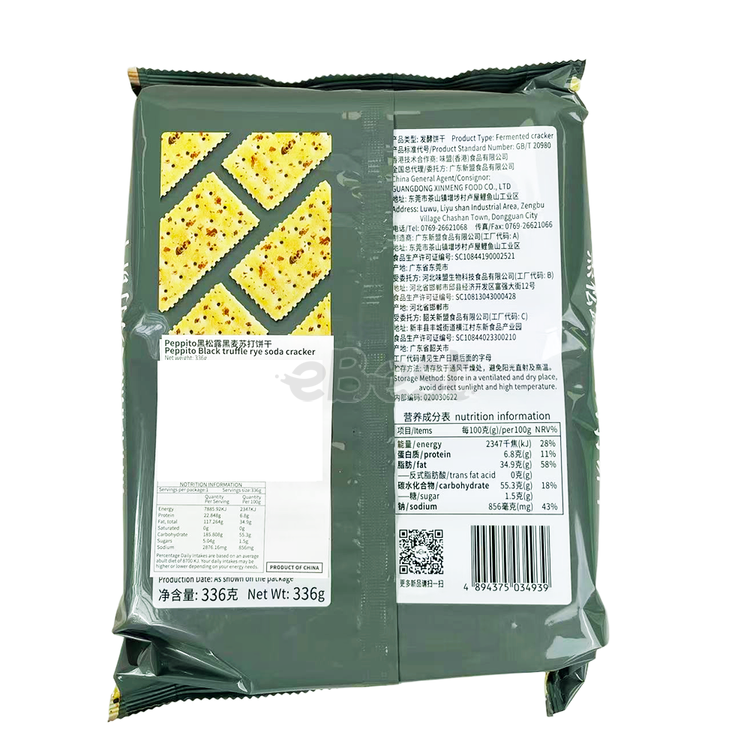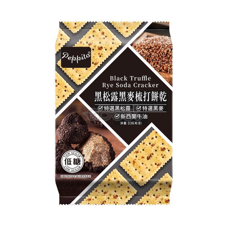 Rich aroma, grain flavor, rich nutrition. Peppito black truffle rye soda crackers with low sugar content combine rare black truffles with nutritious rye. The rich aroma is intertwined with the natural grain flavor of rye, adding an irresistible temptation to this soda cracker.