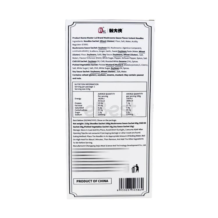 The noodles are chewy and delicious with a rich sauce flavor. Lai Ji Lai Da Xia Mushroom Noodles with Soy Sauce is a classic Chinese instant noodle, which is popular among consumers for its unique mushroom sauce flavor. This noodle is made of high-quality wheat noodles and paired with a rich mushroom sauce. It has a rich taste and a fragrant aroma, bringing you an authentic home-cooked delicious experience.