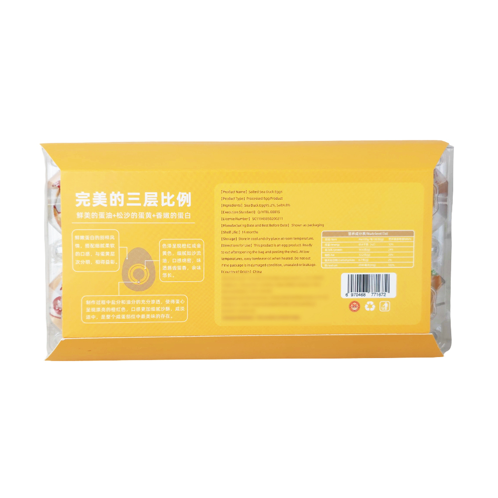 The best porridge accompaniment with salty and fragrant egg yolk. Directions:Microwave 15s can get salted eggs with flowing oil,Crack the eggshell, the egg white is translucent, and the salty and fragrant smell is fragrant. The egg yolk is round and full, and the oil bursts when you bite it lightly, with a strong salty and fragrant smell. It can be eaten with porridge for breakfast or cooked, so that you can enjoy the seafood flavor in every bite. Hetian Baolong adheres to quality and encapsulates deliciousness. Come and try it!