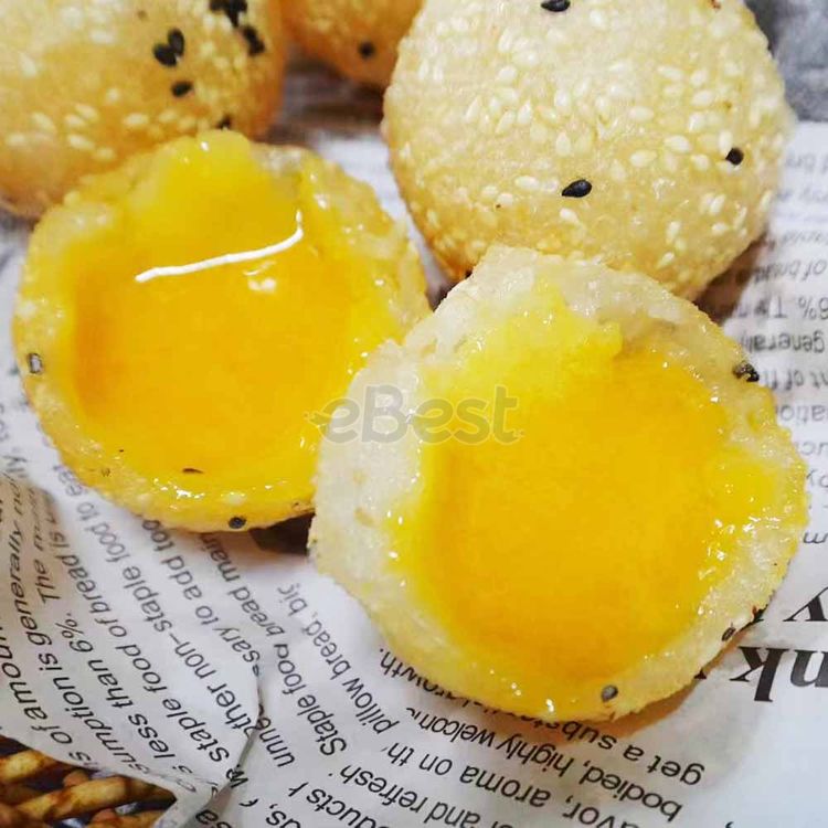 Recipe: salted egg yolk, butter, wheat flour, black and white sesame, sugar, corn flour, fresh milk, cream