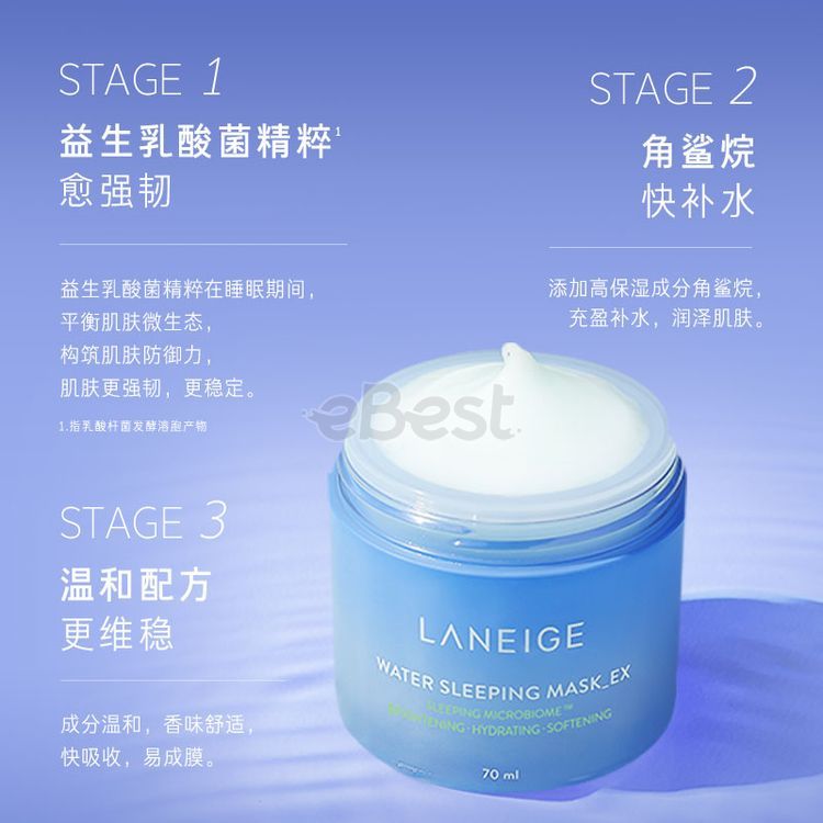 Laneige Sleeping Mask, soothing and moisturizing to improve keratin repair after sun exposure, one-third of life is in sleep, and the night is the prime time for skin care products to absorb this moisturizing mask, with a light blue cream mousse texture, on The face is refreshing and moisturizing. The no-wash sleeping mask, the texture of the frozen film will not dry overnight. When you wash your face in the morning, you will feel that the skin is very smooth and moisturizing.