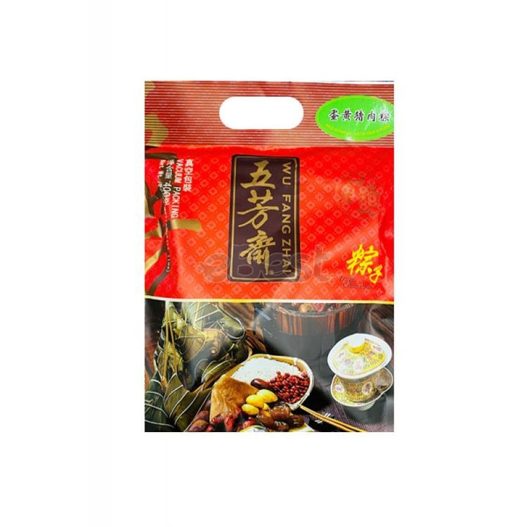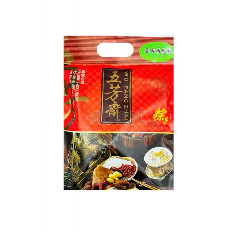 Zongzi is a traditional Chinese delicacy made from glutinous rice and bamboo leaves. It is primarily categorized into two types: sweet and savory. This particular zongzi has the addition of salted egg yolk, which enhances its flavor and creates a more layered texture. The product is fully cooked and can be consumed after heating.
