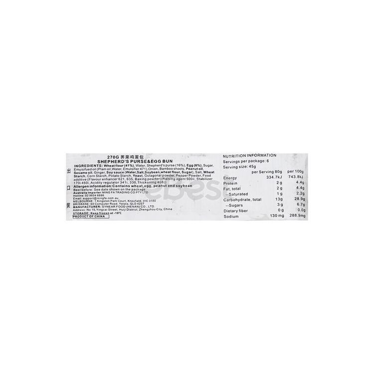 Sian Shepherd's Purse Egg Bun 270g (Frozen, Cold Chain Delivery)