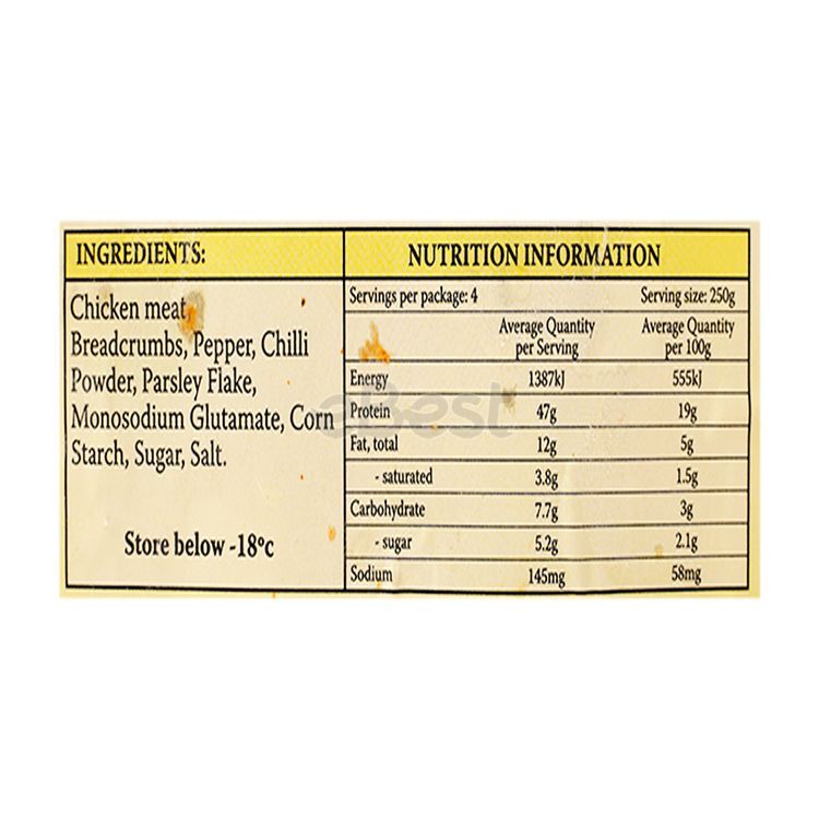 Cooking tips: Each box of chicken chops must be cooked before serving. Heat the oven at 200 ° C, bake on one side for 10 minutes, turn over and bake for another 10 minutes, or use a pan to cook or put in a deep frying pan.