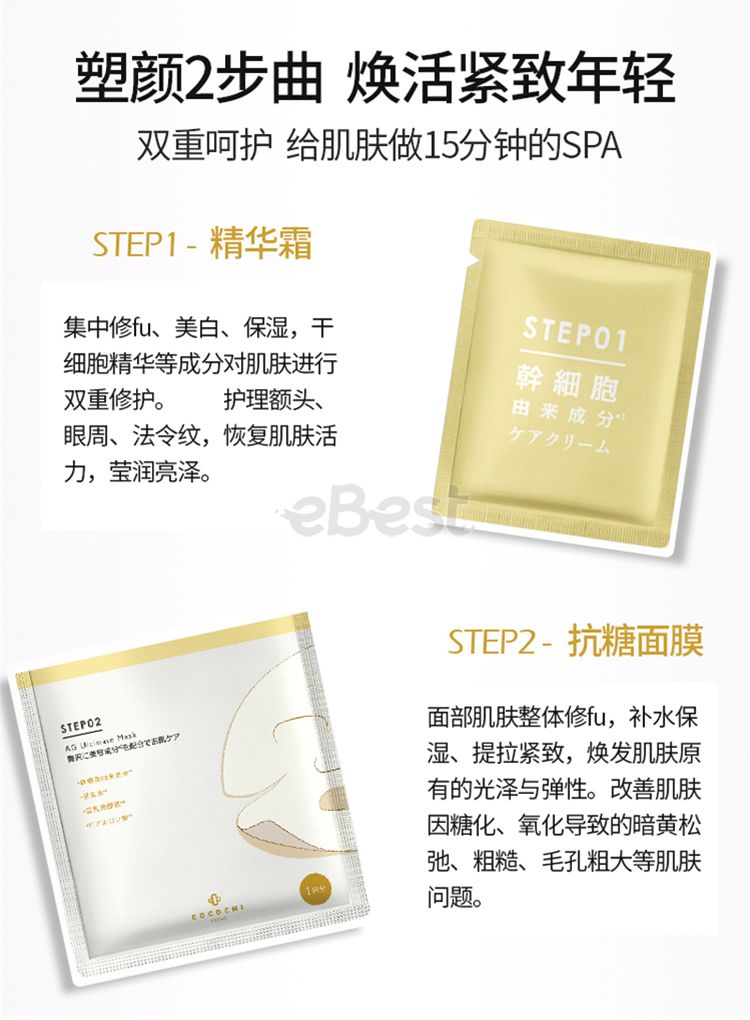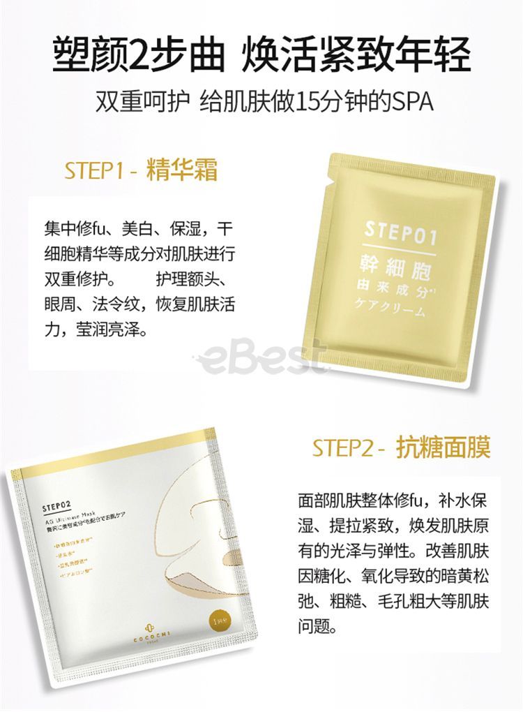 Repair essence cream + anti-glycation beauty serum mask, step 1 essence cream concentrates repairing, brightening and moisturizing, step 2 anti-sugar mask overall improves skin dryness, dullness and enlarged pores caused by glycation and oxidation. Various anti-sugar ingredients, strong Strong repair of dull skin, natural ingredients, concentrated skin nutrition, mask paper material is 100% cupro fiber, gentle care. Addition of alcohol-free dyes, etc., can be used for sensitive skin.