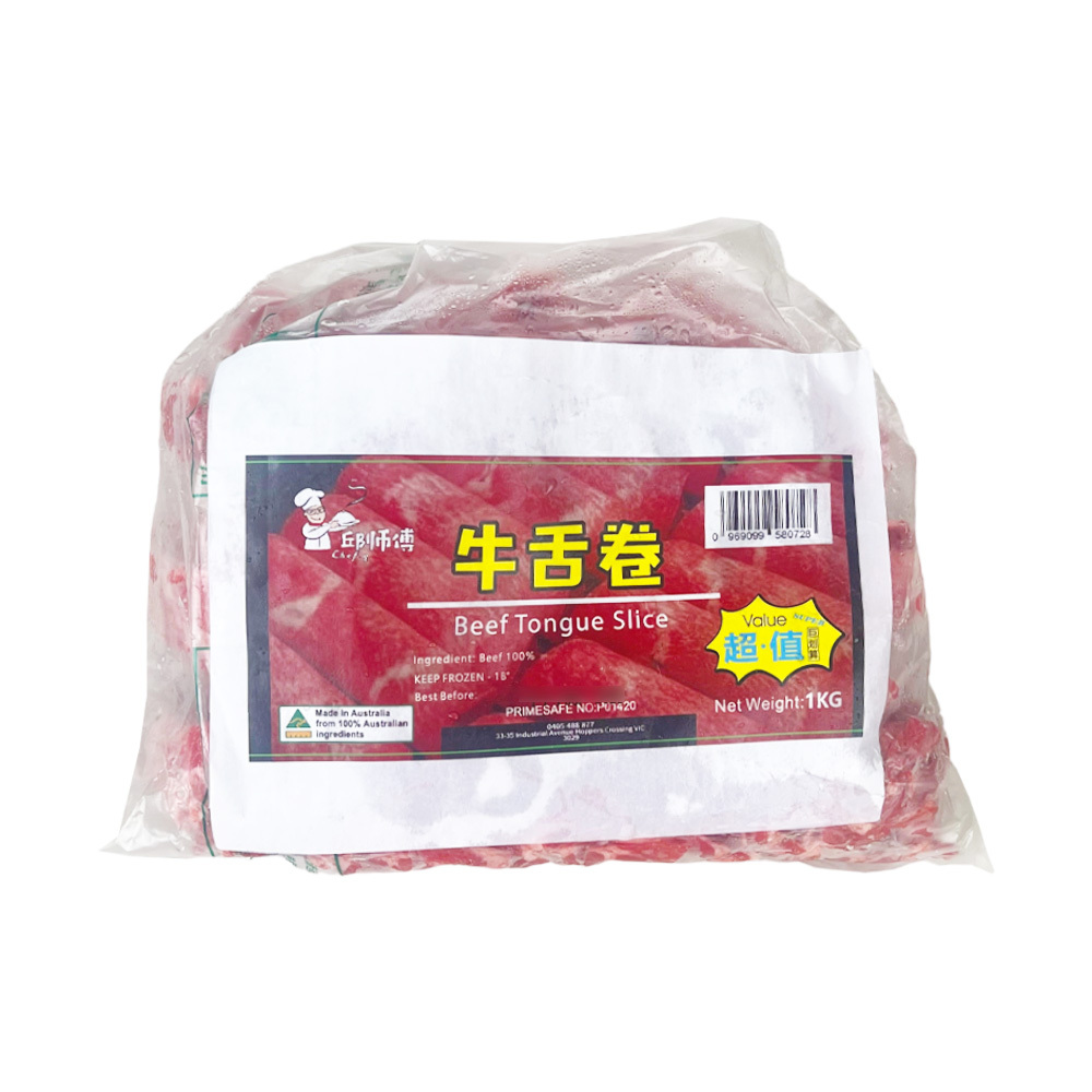 Fresh and tender meat with clear texture. High-quality beef tongue. Storage method: frozen. Selected beef tongue, finely sliced, moderate thickness, not easy to curl, suitable for barbecue, hot pot, and iron plate frying. Professional meat brand, standardized processing, safe and reliable, a safe choice.