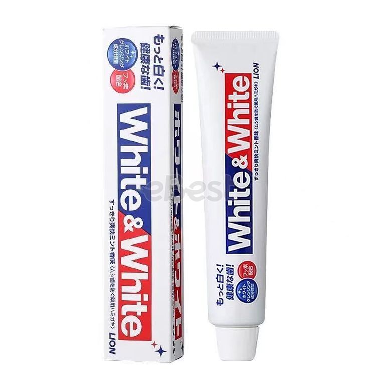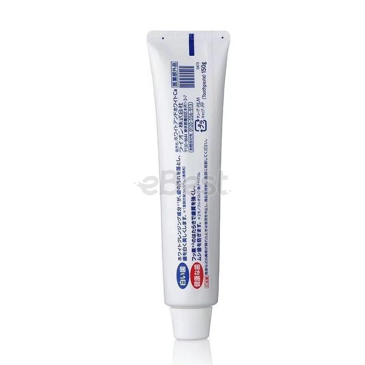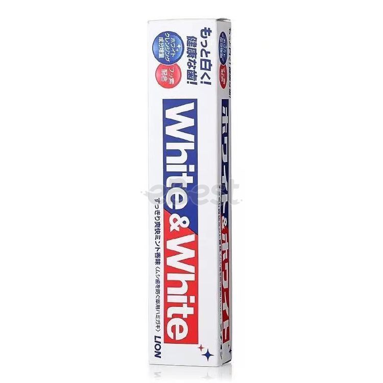 "White & White Lion 150g Horizontal Type" is a toothpaste containing "fluorine", a medicinal ingredient that prevents tooth loss and creates healthy teeth. Brushing cleans teeth and makes them white and beautiful. Contains white cleansing ingredients (heavy calcium carbonate (cleaning agent)). A refreshing mint flavour.