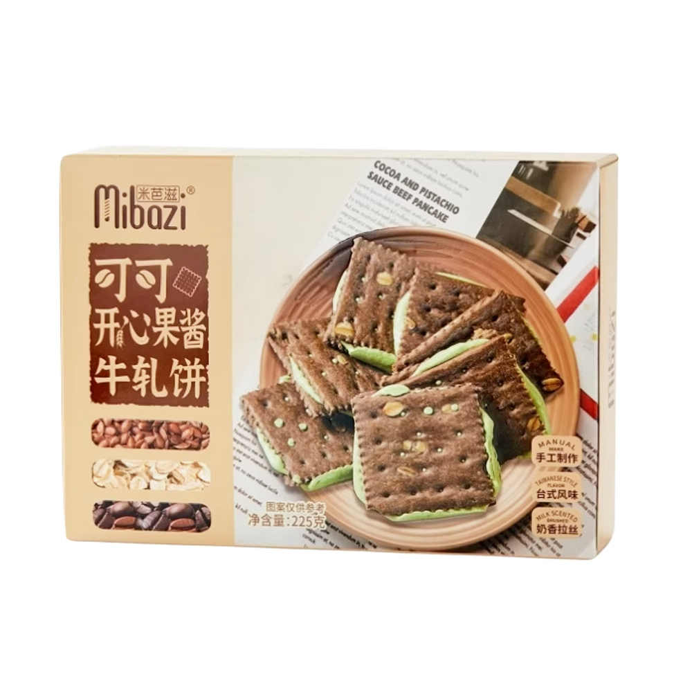 Crispy double-nut sweet but not greasy cocoa cookies wrapped with pistachio nougat filling, Iranian pistachio particles are distinct, and Valrhona cocoa powder is used to blend the sweetness. Individually packaged to lock in freshness, a perfect choice for afternoon tea.