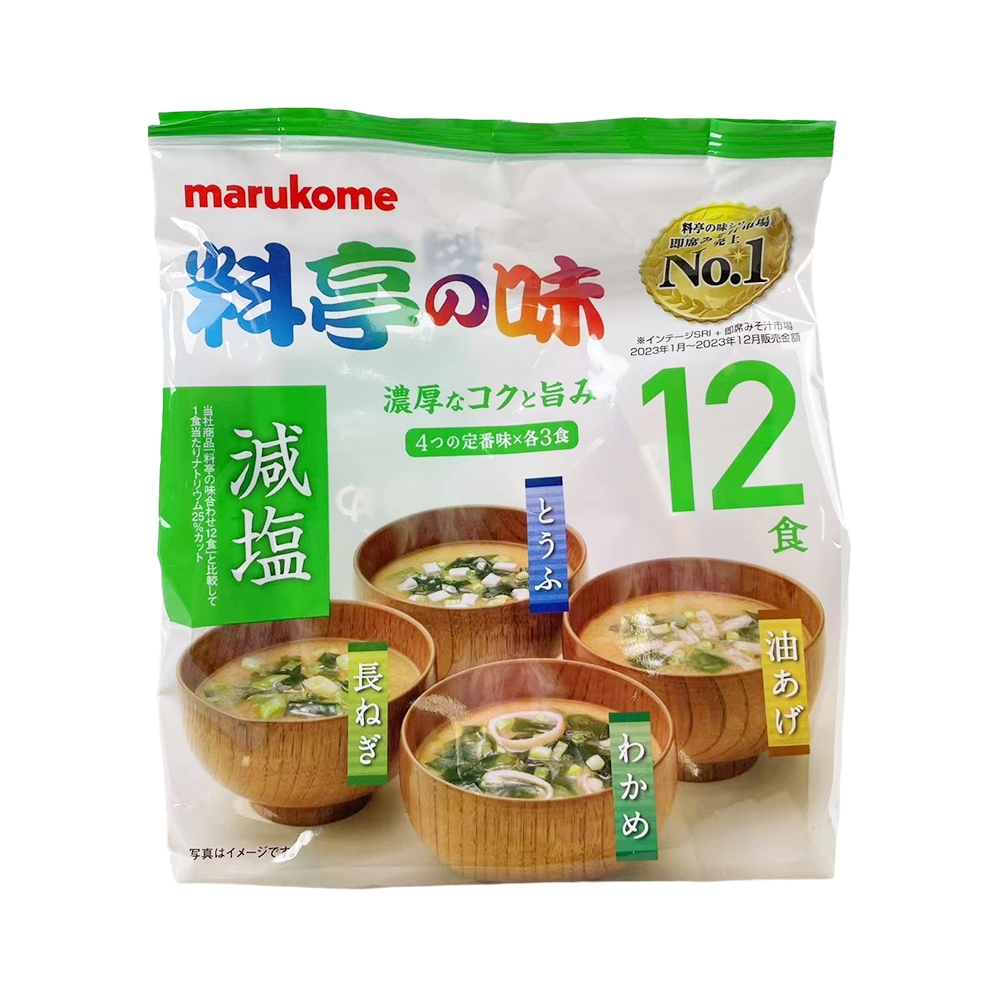 Reduced-salt formula Kyoto-style instant warm stomach Marukome reduced-salt miso soup uses the traditional craftsmanship of raw rice, reducing salt while retaining the mellow and fresh taste. Just brew with hot water to get authentic Japanese miso soup. You can add tofu, kelp and other ingredients. 12 bags meet the daily needs of the family. It is suitable for breakfast or late at night to warm the stomach. It is a Japanese-style healing drink in the fast-paced life.