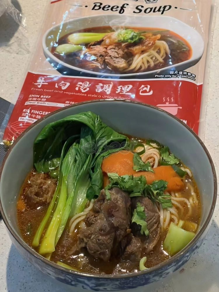 The sauce is rich and mellow, the meat is soft and glutinous, and the soup is rich. Storage method: frozen for 180 days. Product ingredients: water, beef, radish, tomato, spices (pepper, ginger, garlic), salt, sugar, soy sauce. Consumption method: 1. Add the seasoning bag and boil for 3-5 minutes, and add water to dilute the soup according to personal taste. 2. After boiling about 100cc of water, add your favorite noodles and cook for 6-7 minutes. 3. Sprinkle with appropriate amount of chopped green onions and vegetables to complete a bowl of delicious beef noodles. Frozen instant heating beef cooking soup packs can be said to be a must-have for modern people's refrigerators. No matter whether the weather is hot or cold, windy or rainy, as long as you want to eat beef soup or even beef noodles, you can easily enjoy it at any time. It is very convenient whether you enjoy it yourself or entertain guests. It is suitable for any vegetables. Adding vegetables will not take away the deliciousness of the beef soup, but will make the beef soup more sweet and mellow. You may wish to buy it and try it!No Noodles