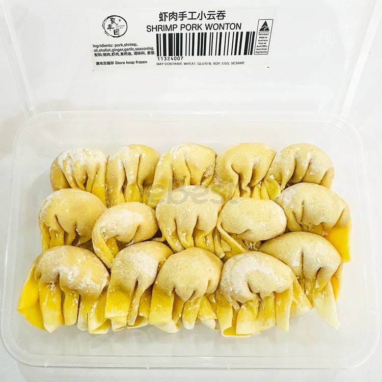 Chewy and smooth skin with delicious meat filling. Storage method: freeze for 90 days, refrigerate for 3 days. Product ingredients: pork, shrimp meat, flour, seasoning, cooking oil. How to eat: put into boiling water, cook until the dumplings float on the surface of the pot, and then take out of the pot in 5-10 minutes. The actual cooking time depends on the fire. Chewy skin, delicious meat filling. Steaming dumplings are served on the table, which is the taste of home. Each wonton is wrapped with shrimp filling, and the wonton skin is as thin as a cicada's wing, restoring the flavor of Cantonese teahouse dim sum.
