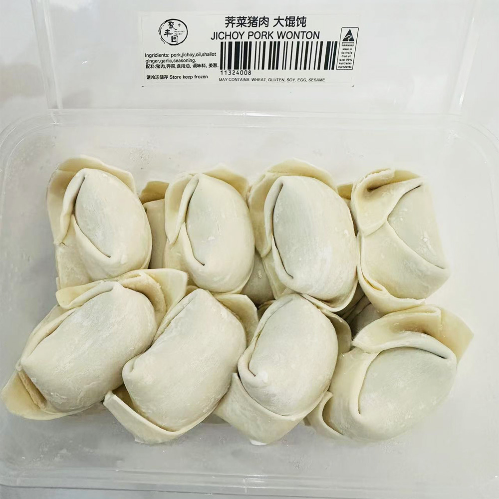 Chewy dough with fragrant and delicious meat filling Storage method: freeze for 90 days, refrigerate for 3 days Product ingredients: pork, shepherd's purse, flour, seasoning, cooking oil. How to eat: put in boiling water, cook until the dumplings float on the surface of the pot, and then take out of the pot in 5-10 minutes. The actual cooking time depends on the fire. Chewy dough, with delicious meat filling. Steaming dumplings are served on the table, which is the taste of home. After cooking, the shepherd's purse is fragrant, replicating the taste of Suzhou's time-honored brand.