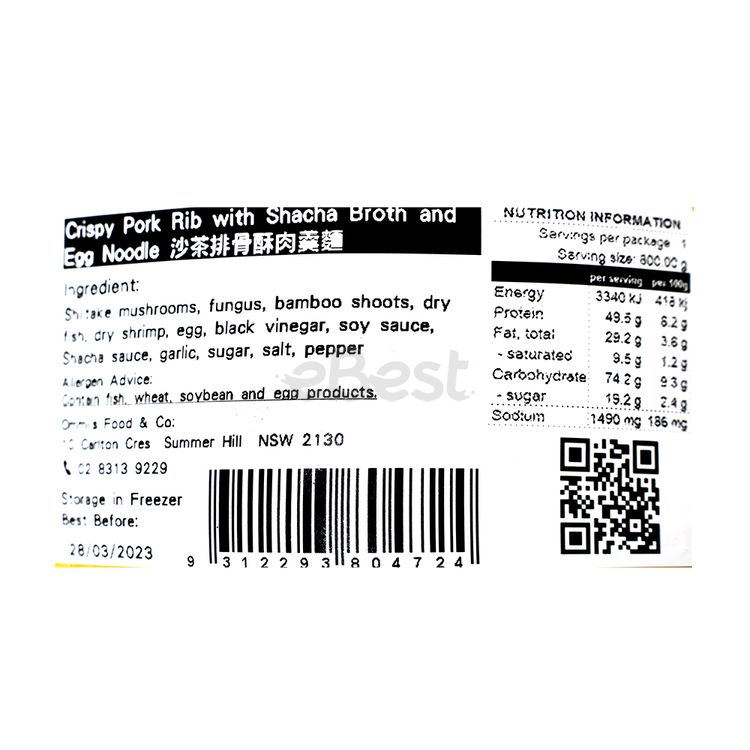 Ommi New Taiwanese Internet Famous Food, Satay Pork Rib Soup Noodles 800g, Frozen Storage, Cold Chain Delivery