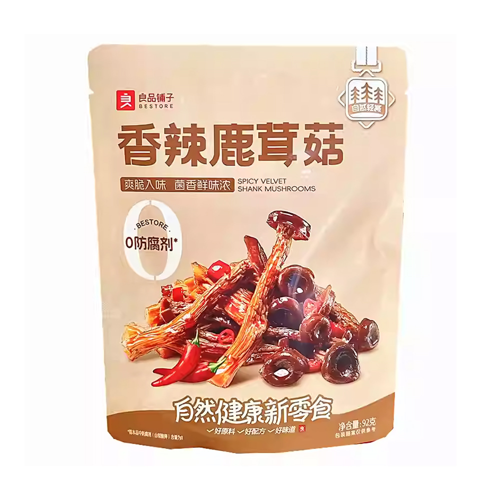 The noble mushroom, spicy and addictive vegetarian Liangpinpu spicy velvet mushroom (92g), Yunnan velvet mushroom is torn into strips by hand, and the chili oil is soaked deep into the gills.