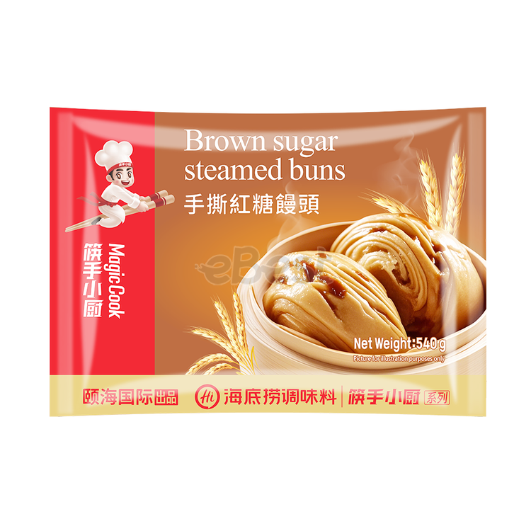 Haidilao hand-torn brown sugar buns (540g), an old-fashioned flavor with brown sugar flowing inside. The swirl patterns are made from Yunnan sugarcane brown sugar, which forms natural tear patterns after fermentation, and the sugar inside flows out when steamed.