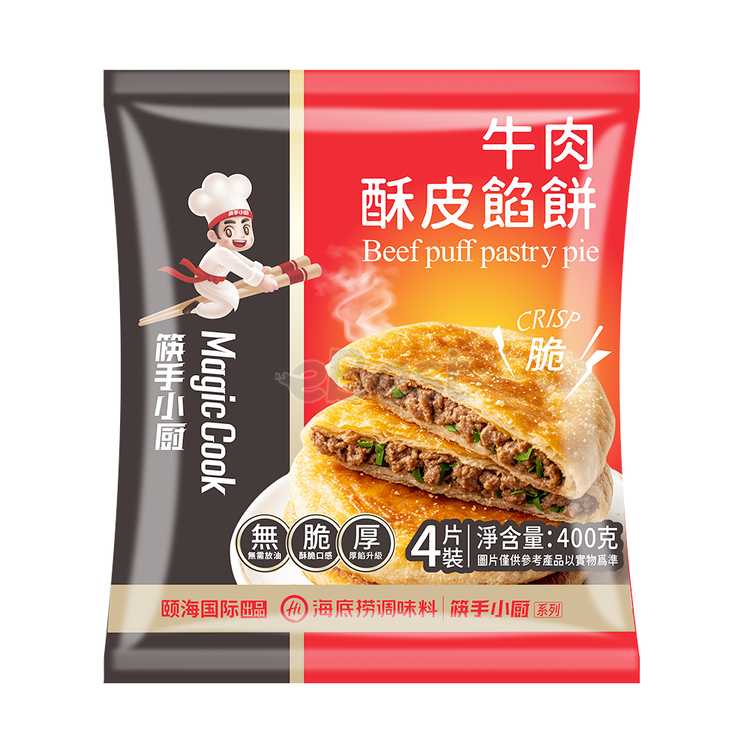 Black pepper spicy plant protein creative vegetarian Haidilao vegetarian black pepper beef flavor puff pastry (400g), soy protein simulates beef fiber, the puff pastry contains 27 layers of puff pastry, and it remains crispy when reheated in a microwave.