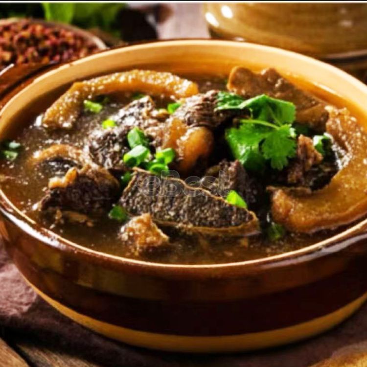 Beef offal feast with classic Cantonese flavor. Storage method: frozen. Product ingredients: 200g beef offal, 500g beef broth. Famous old-fashioned beef offal soup (700g), contains 6 parts of the beef, including tripe/intestines/lungs, paired with radish to absorb the meat flavor, and more authentic with garlic chili sauce.
