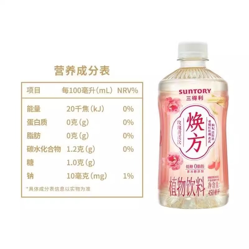 Rose soothes depression and astragalus invigorates the body. Japan's Suntory Rose and Astragalus Drink (450ml) is made from Pingyin rose and Longxi astragalus, with collagen peptides added. It is suitable for replenishing energy after staying up late.