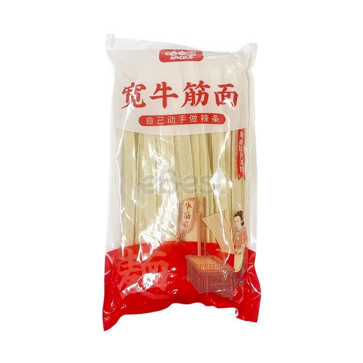 Wide noodles with chewy beef tendon and northwestern flavor. Hachile wide beef tendon noodles (500g) are made by mixing high-gluten wheat flour and beef bone collagen powder. The width of the noodles is 8mm and the soup will not become mushy after long cooking. It is suitable for making northern noodles such as oil-splashed noodles/braised noodles.