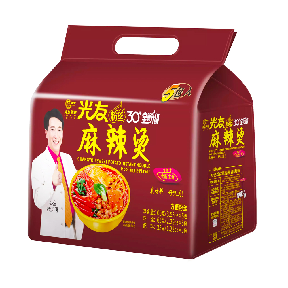 Spicy Vermicelli Instant Sichuan Classic [Five Packs] Guangyou Instant Vermicelli Spicy Hot Pot Flavor (100g*5), sweet potato vermicelli with Sichuan Pixian bean paste packet, brew in hot water for 5 minutes to restore the street flavor, a single serving of calories is only 189kcal.