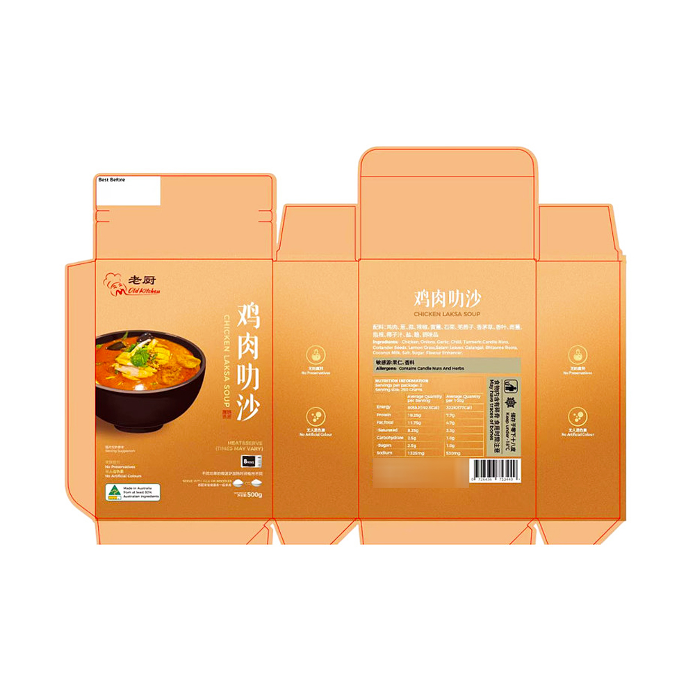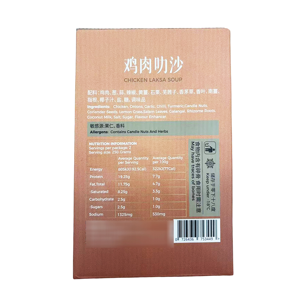 Rich flavor, tender chicken, ready to eat, authentic Southeast Asian flavor, rich laksa soup with tender chicken, spicy coconut flavor. Ready to eat, delicious with rice or rice noodles, a fine choice among fast food.