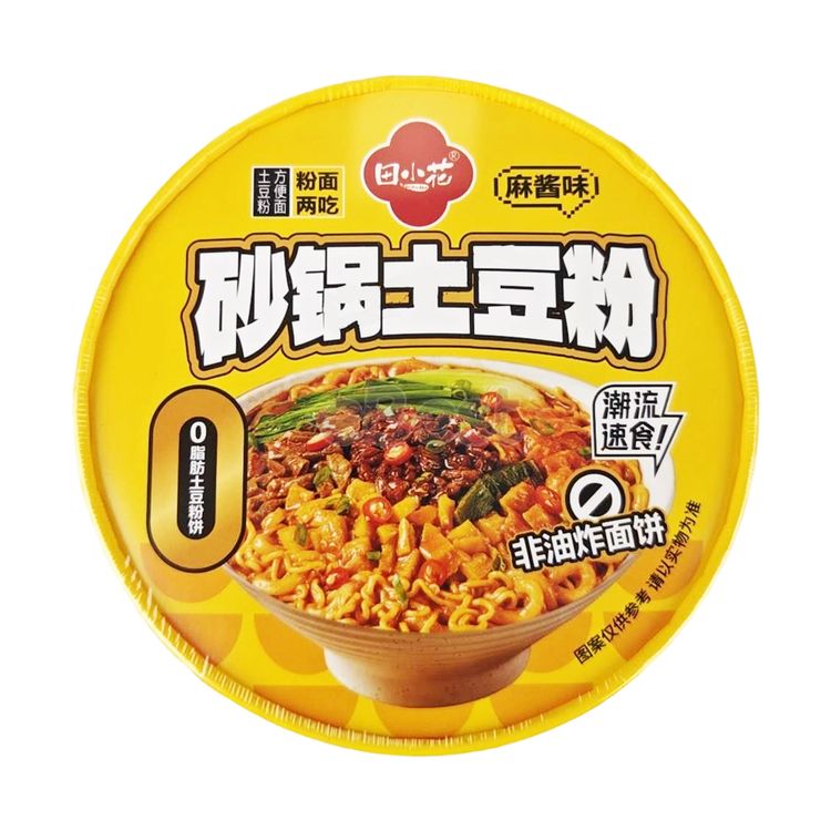 Enjoy the delicious sesame sauce flavor of casserole potatoes. Tian Xiaohua sesame sauce flavor potato noodles, authentic casserole flavor, rich sauce flavor and smooth taste. This product may not have tableware, please do not buy if you mind