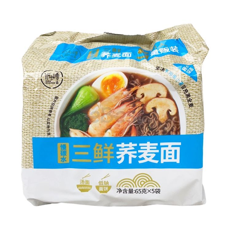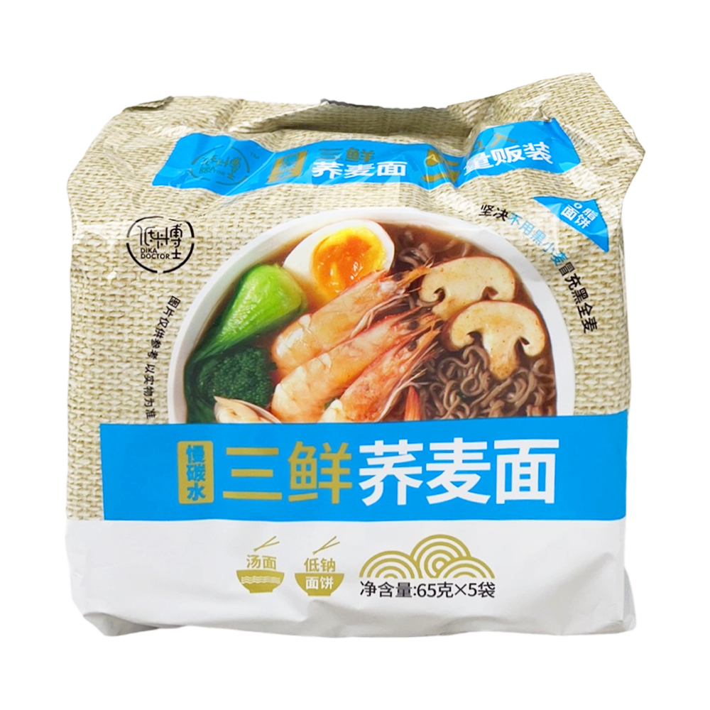 Three-flavor buckwheat noodles are light, delicious and low-calorie choice. Low-calorie Dr. Three-flavor buckwheat noodles have a refreshing seafood-flavored soup base. It is a low-calorie light meal suitable for people who control their body weight.