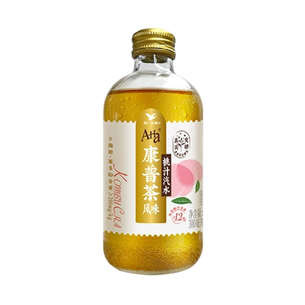 Kombucha-style peach juice fruity health drink Unified A-Ha Kombucha flavored peach juice, the sweetness of peach juice and the flavor of kombucha are full of vitality.