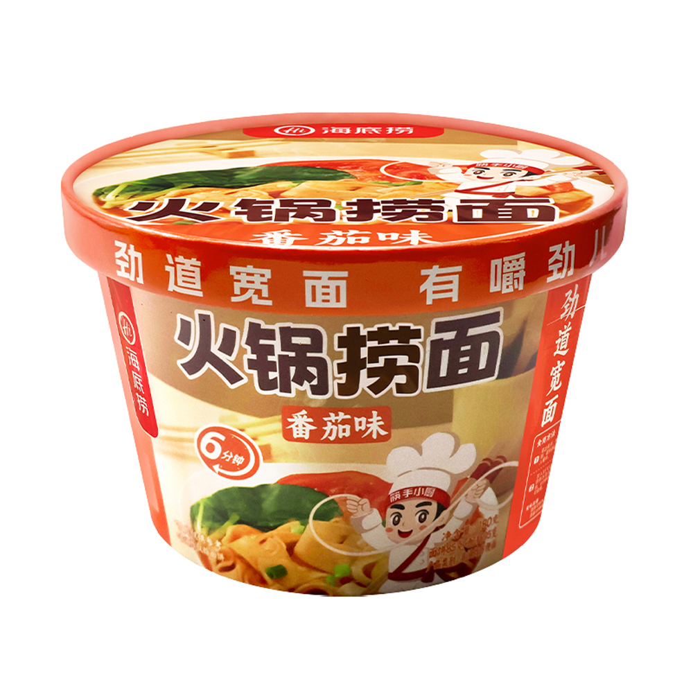 Hot pot noodles tomato flavor cup instant Haidilao hot pot noodles, tomato flavor 180g, rich hot pot soup base, chewy and tasty noodles.
