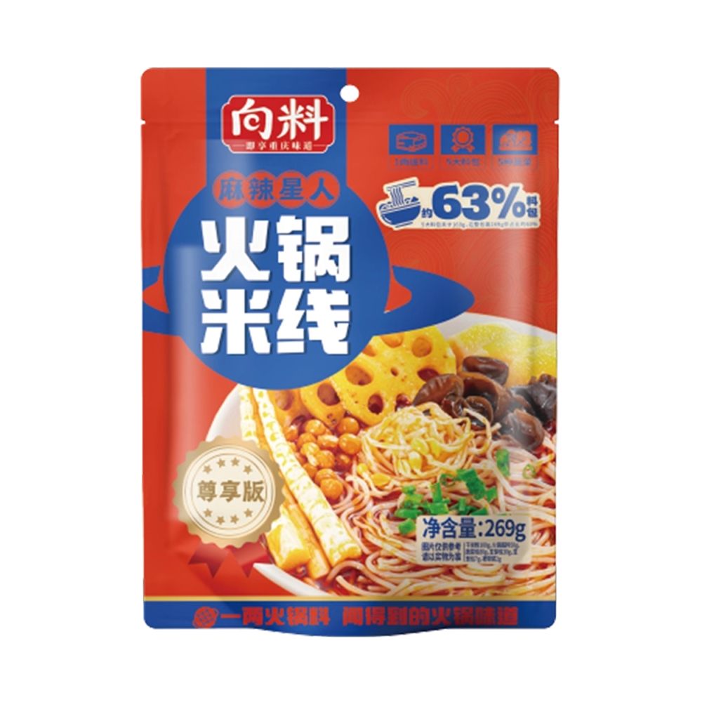 Hotpot rice noodles with spicy and satisfying ingredients, Chongqing hotpot flavor soup base, chewy rice noodles, enjoy the spicy and delicious taste at home.