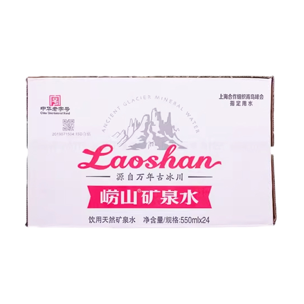 Drink the refreshing and sweet Laoshan mineral water in boxes. 550 Red Mine: a representative product of Laoshan mineral water, filtered through deep granite cracks, with a refreshing and sweet taste. It is a strontium-metasilicate type natural drinking mineral water, rich in minerals beneficial to the human body.