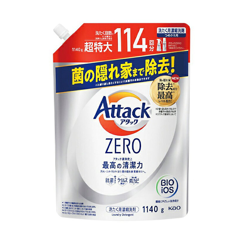 Highly efficient, deep-cleansing, and economizes on laundry detergent. 1. The Attack ZERO series boasts the strongest cleaning power ever in Attack laundry detergent history, featuring the world's first ZERO cleaning technology for ultimate cleanliness with zero dirt, zero odor, and zero residue. It also uses enzymes for stain removal and antibacterial and deodorizing properties. 2. AC-HEC enhances the surface's anti-fouling properties for long-lasting cleanliness, while Bio-IOS's high hydrophilicity rinses quickly without leaving any detergent residue. 3. Contains no fluorescent agents or brighteners, resulting in a softer, gentle fragrance reminiscent of a green leaf breeze.