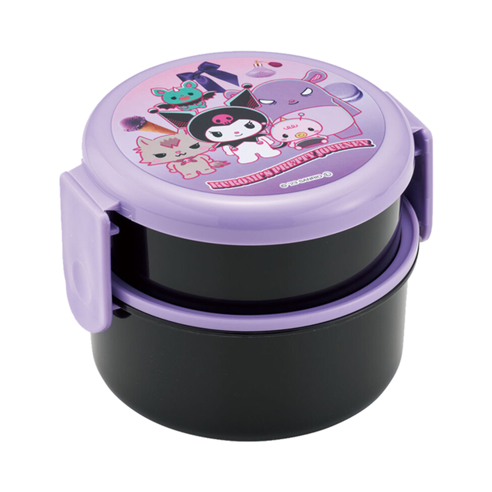 Kuromi Bento Double-Layer Antibacterial Cute Compartments 1. A simple and compact double-layer round lunch box, both the upper and lower layers are treated with a non-stick coating to prevent rice from sticking; 2. Although it has a locking device, it does not have a gasket, so please avoid storing liquid foods; 3. Remove the lid, sealing cover and fork to safely put it in the microwave; 4. All parts except the sealing cover are dishwasher safe.