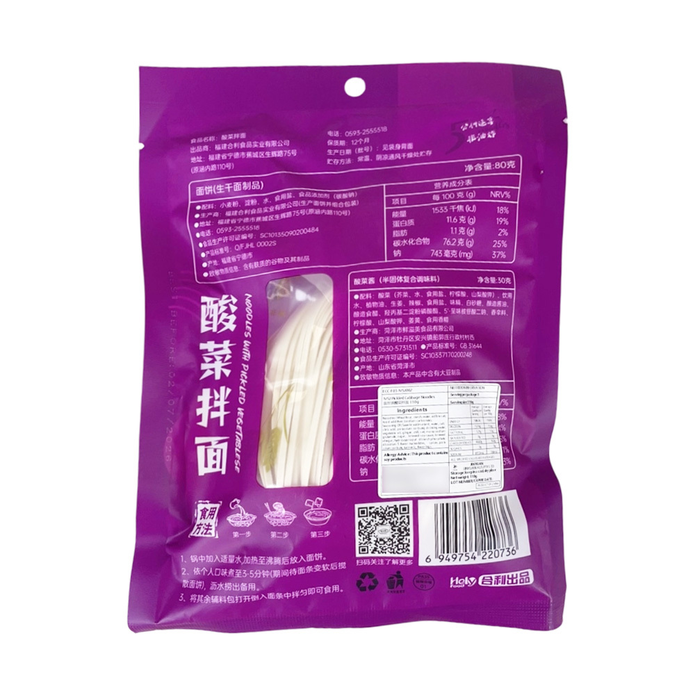 The sour and refreshing sauerkraut is paired with the chewy noodles for a unique and appetizing taste. Individually packaged, ready to eat, perfect for quick meal times.