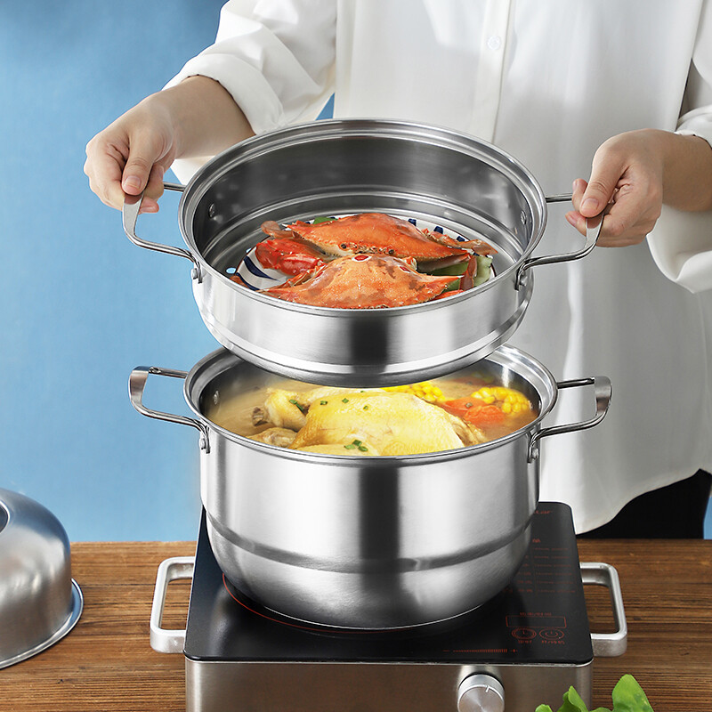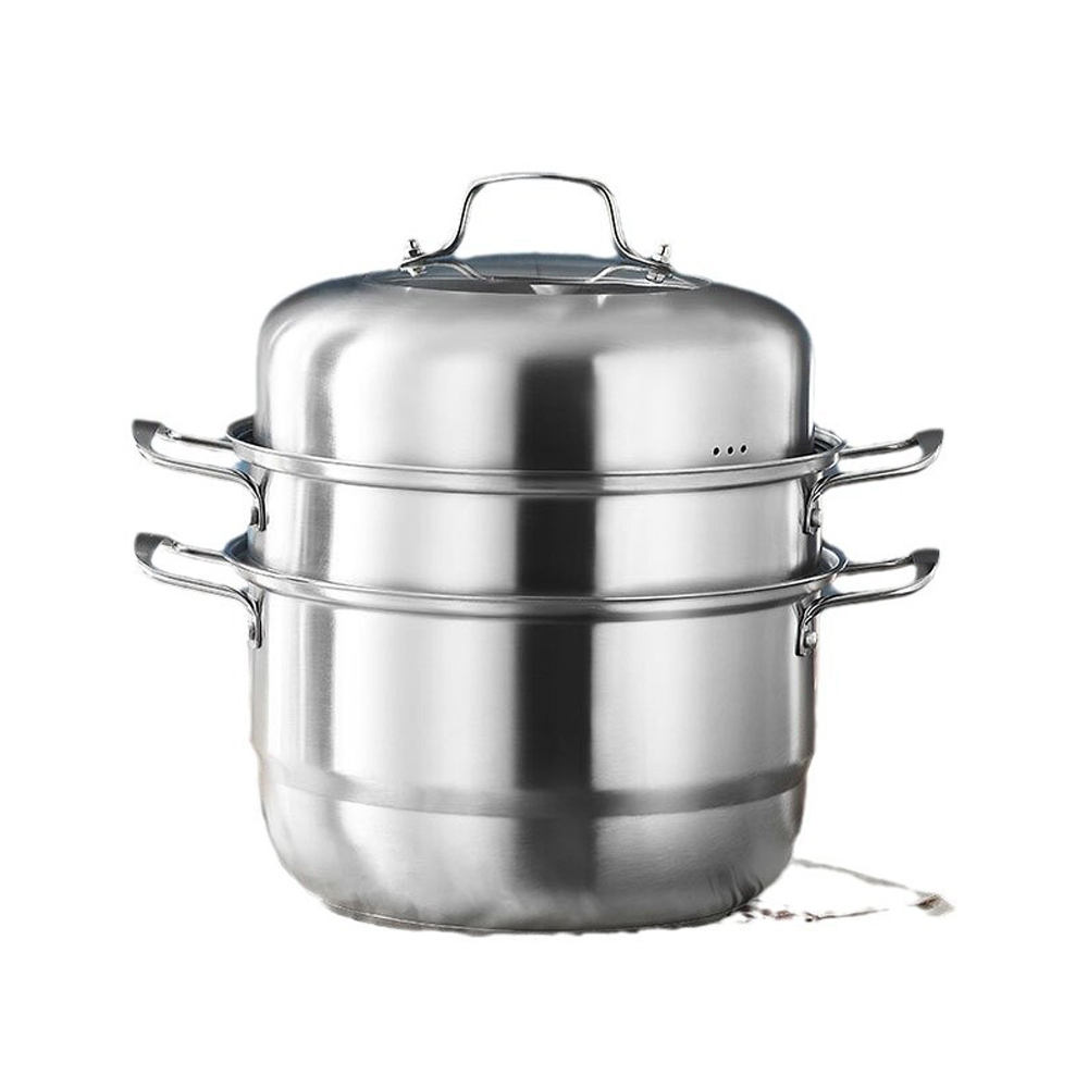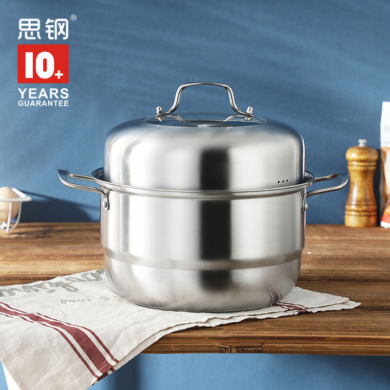 Two-layer steamer Sigang Zhenshang multi-purpose and efficient Sigang Zhenshang two-layer multi-purpose steamer, with a double bottom design for uniform heating, can steam fish and pastries at the same time, a great helper in the home kitchen.