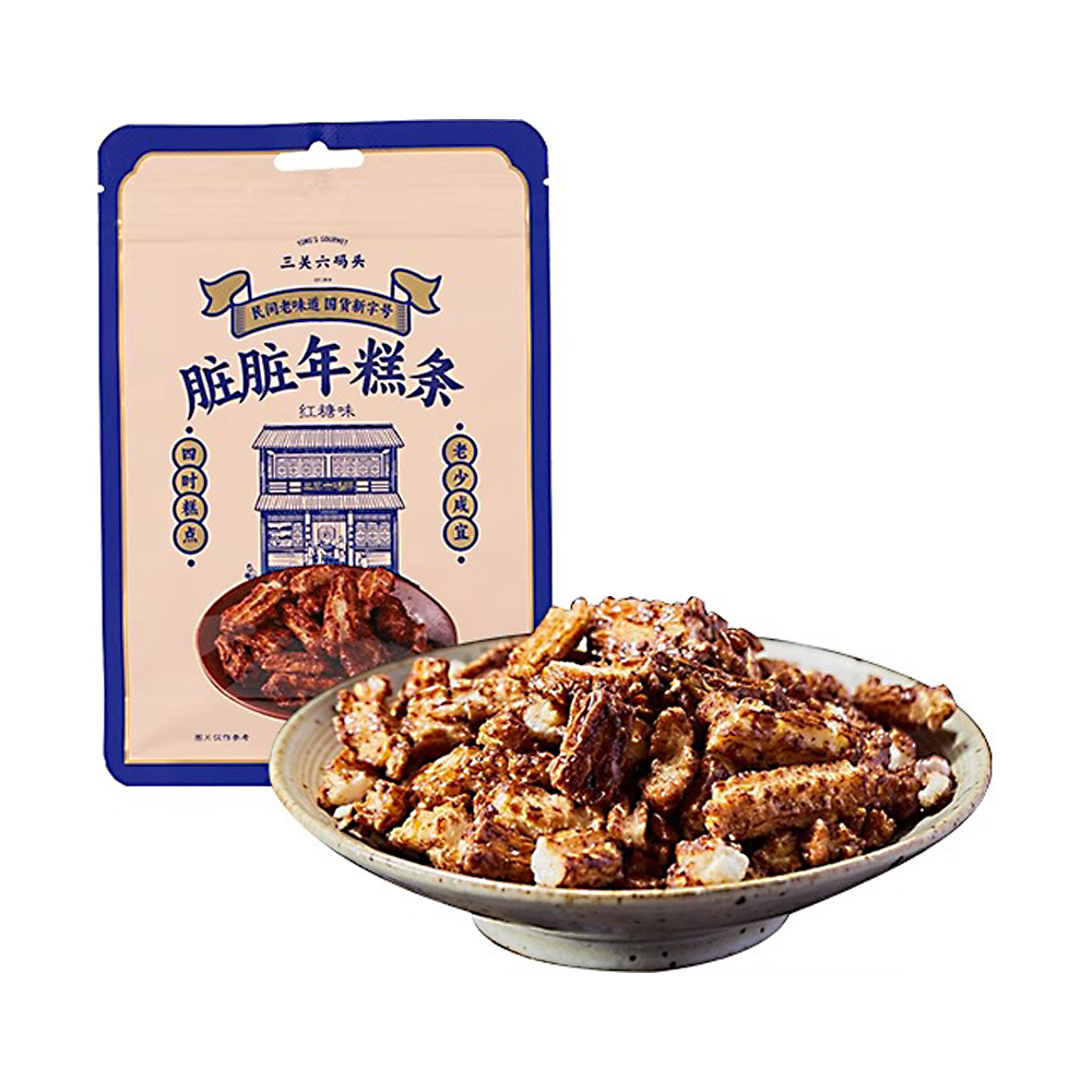 The rice cake strips coated with brown sugar have a slightly crispy outer layer and a chewy inner core. They are sweet but not greasy. When eaten, they are filled with a strong aroma of brown sugar, allowing you to fully enjoy the traditional flavour.