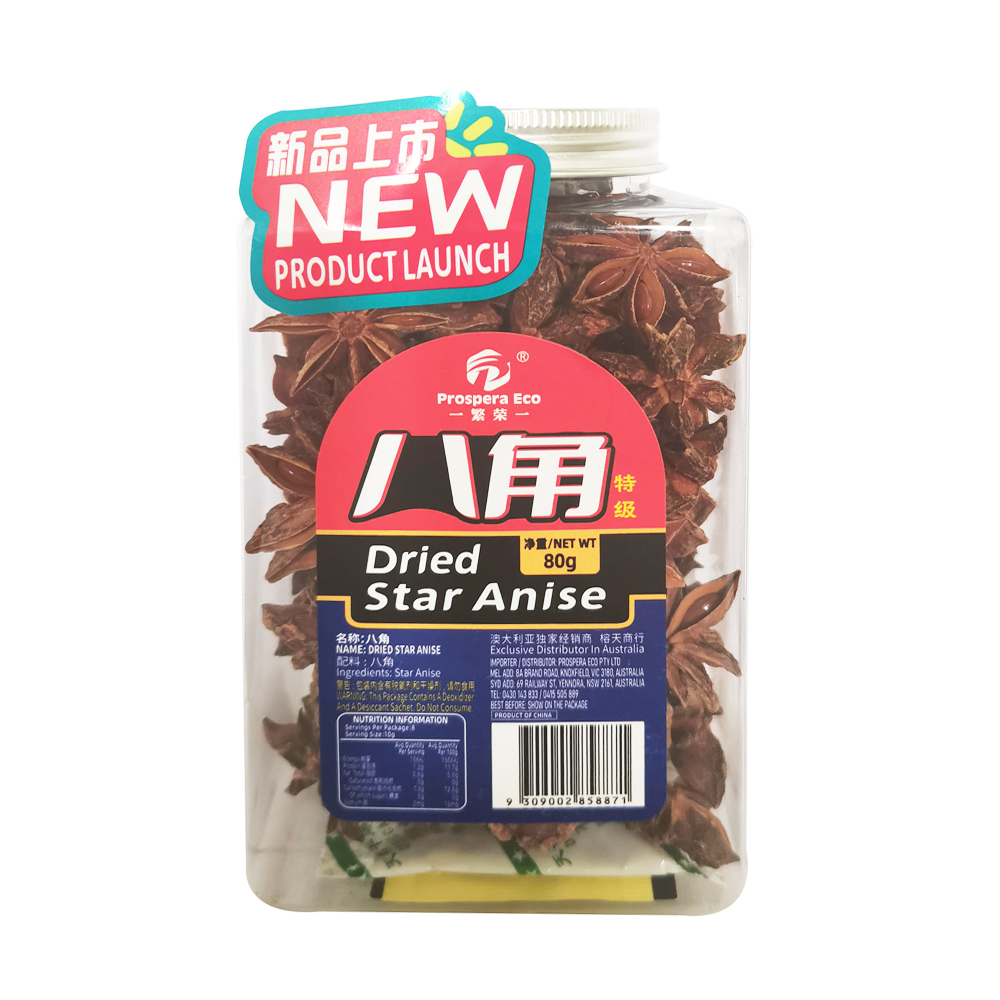 Strong aroma, authentic spice. A must-have in the kitchen. Star anise is dried and canned. It has a strong aroma and is an essential seasoning for enhancing the flavor of stewed meat, braised dishes, etc. It is easy to use and can be stored for a long time.