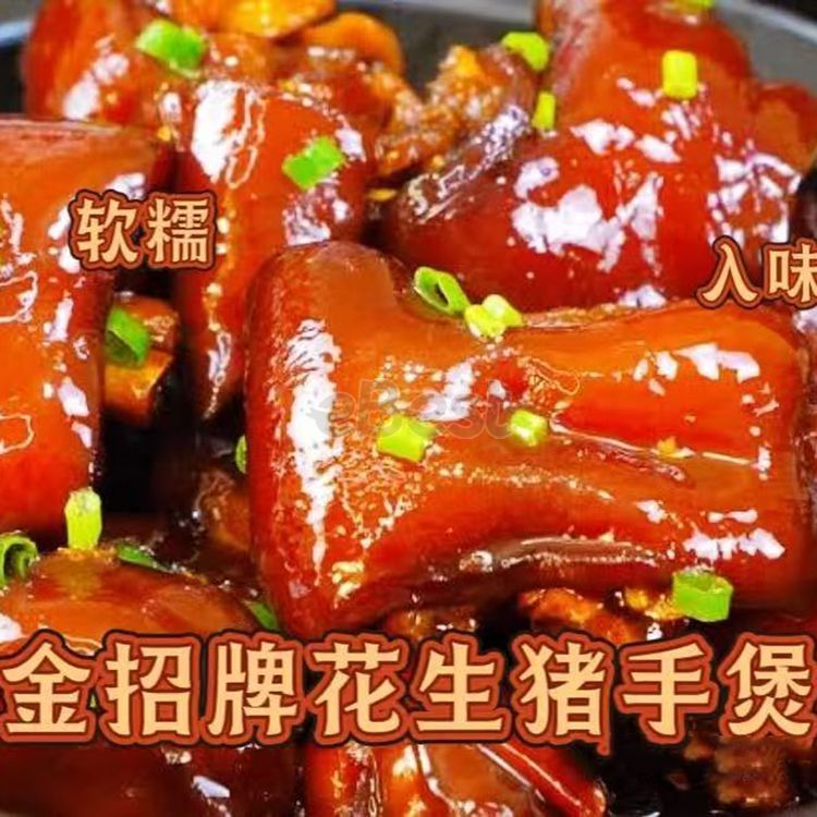 Golden Signature Pork Knuckle and Peanut Stew (800g) Storage: Freeze for up to 180 days Ingredients: Pork knuckle, peanuts, soy sauce, sugar, fermented bean curd, and chuhou sauce. Instructions: Add 80ml of water and bring to a boil, then simmer for 4 minutes until heated through. This premium pork knuckle is soft, glutinous, and flavorful! A bowl is a feast! It goes well with any meal!